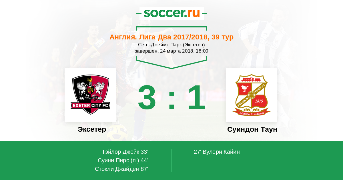 Протокол матча Эксетер против Суиндон Таун