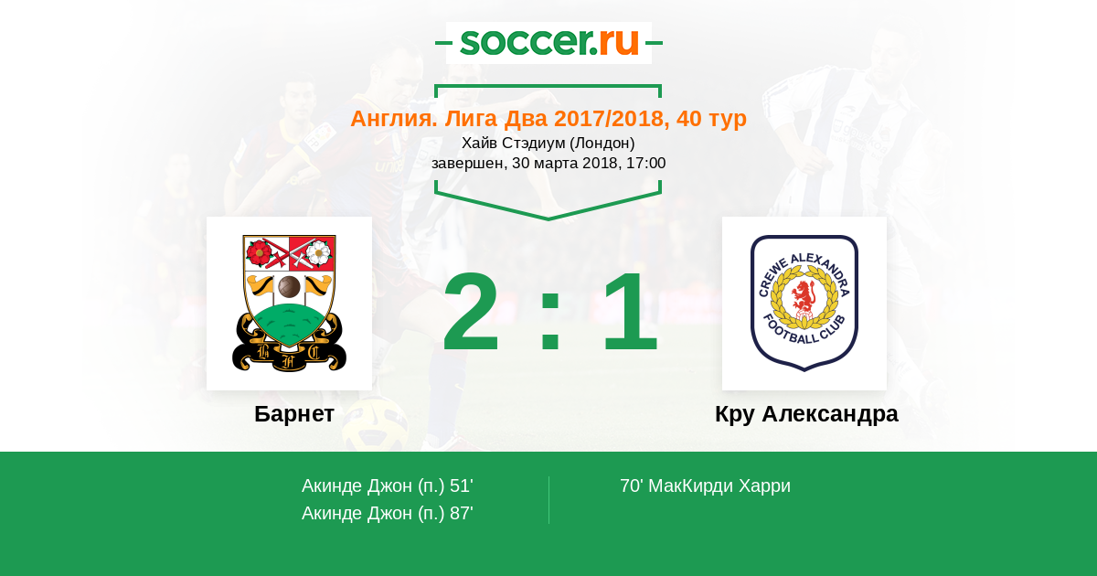 Протокол матча Барнет против Кру Александра