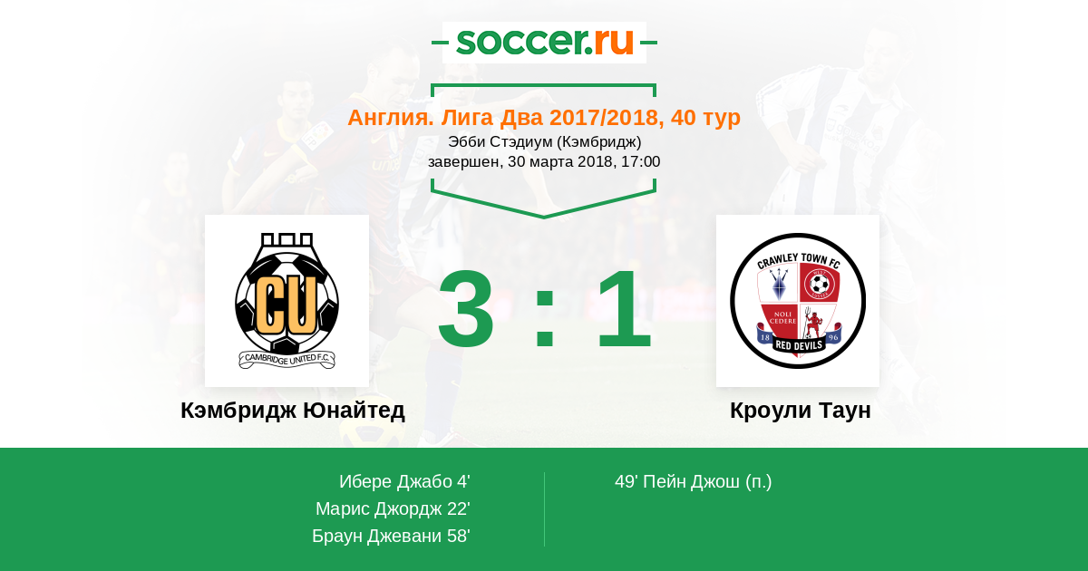 Протокол матча Кэмбридж Юнайтед против Кроули Таун