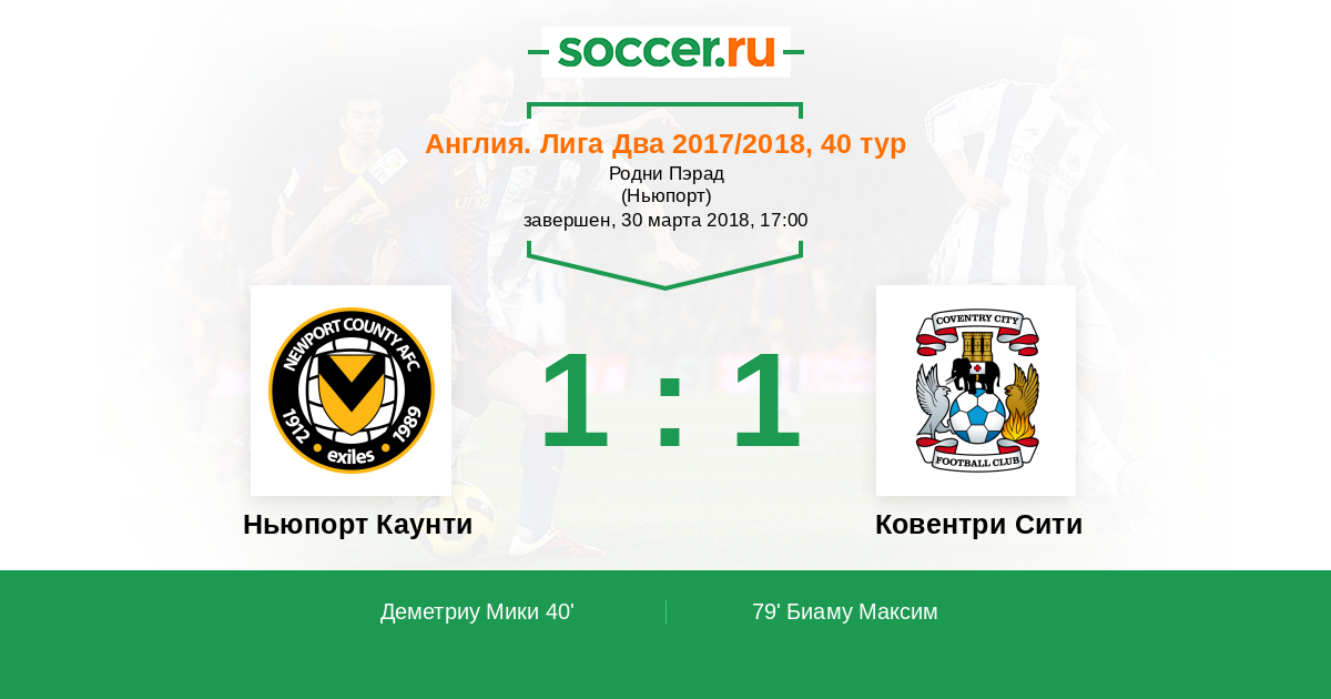 Протокол матча Ньюпорт Каунти против Ковентри Сити