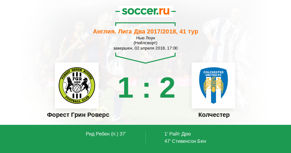 Протокол матча Форест Грин Роверс против Колчестер