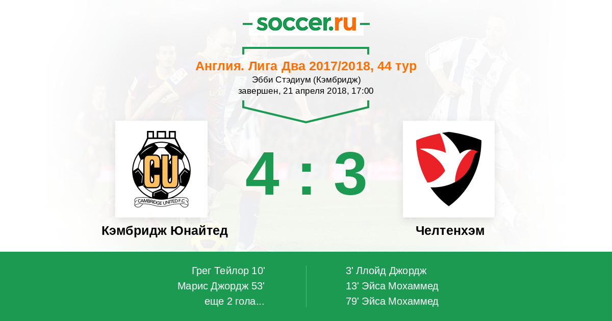 Протокол матча Кэмбридж Юнайтед против Челтенхэм