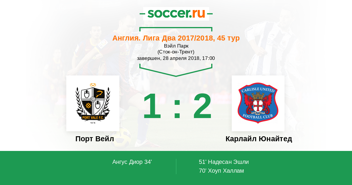Протокол матча Порт Вейл против Карлайл Юнайтед