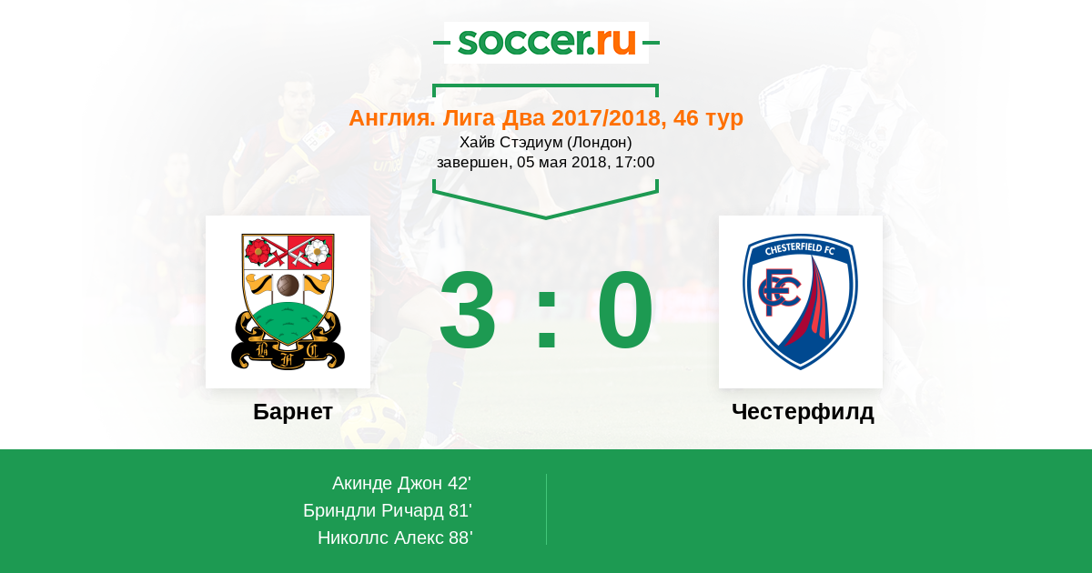 Протокол матча Барнет против Честерфилд