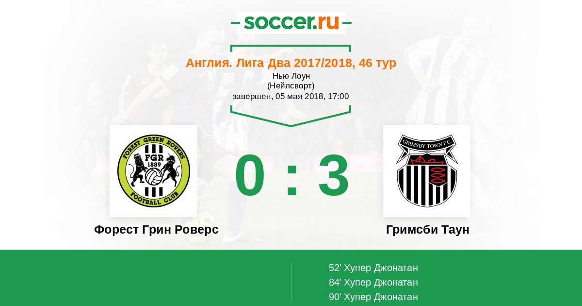Протокол матча Форест Грин Роверс против Гримсби Таун