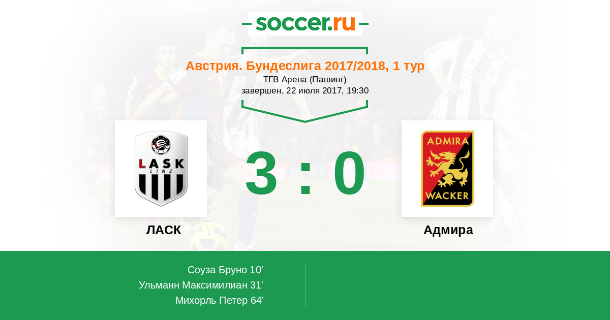 Протокол матча ЛАСК против Адмира