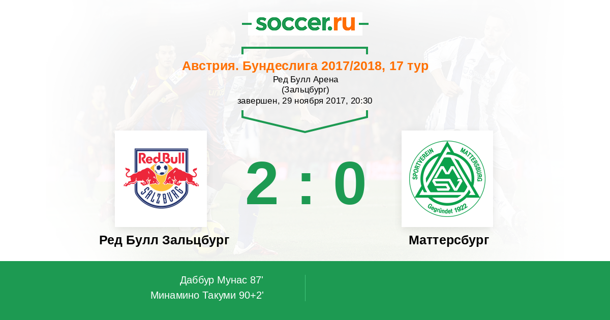 Протокол матча Ред Булл Зальцбург против Маттерсбург