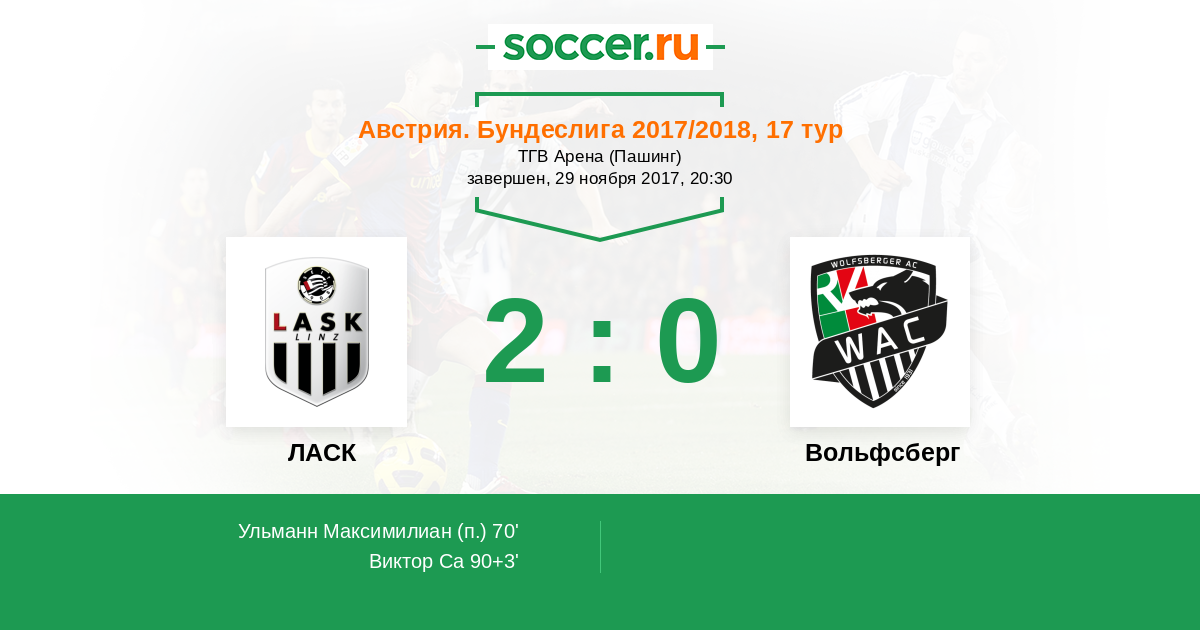Протокол матча ЛАСК против Вольфсберг