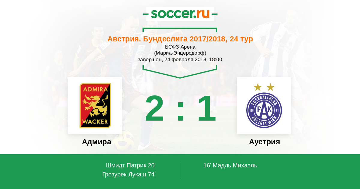 74' (2:1) Грозурек Лукаш (11) (Меркель Александр (52))