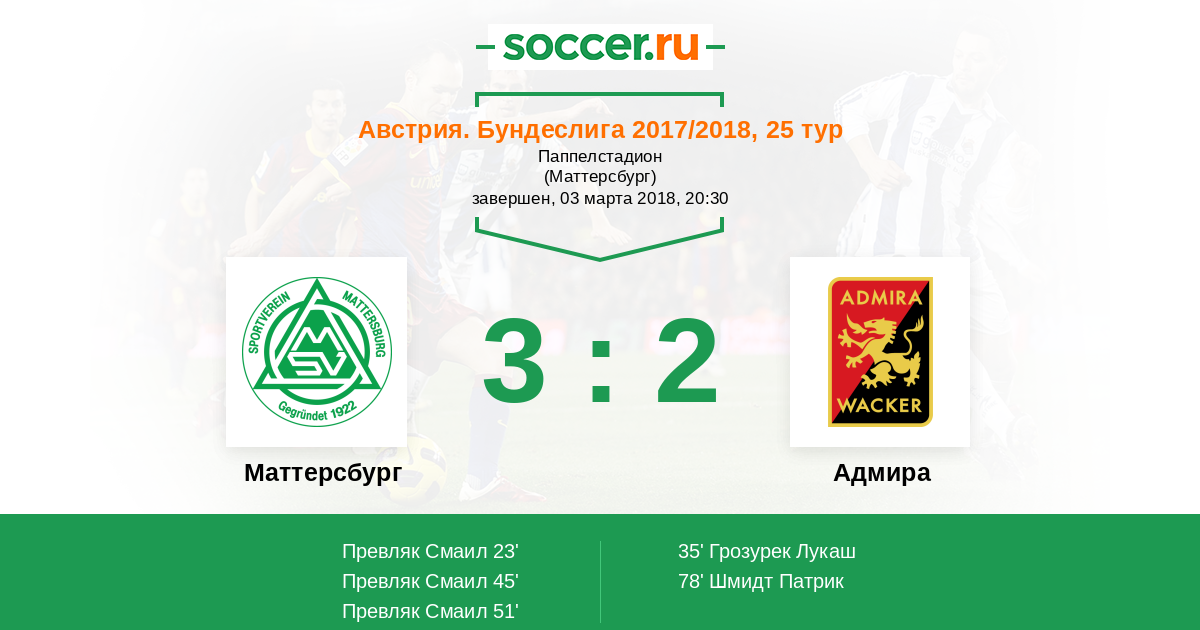 45' (2:1) Превляк Смаил (14) (Новак Михаэль (25))