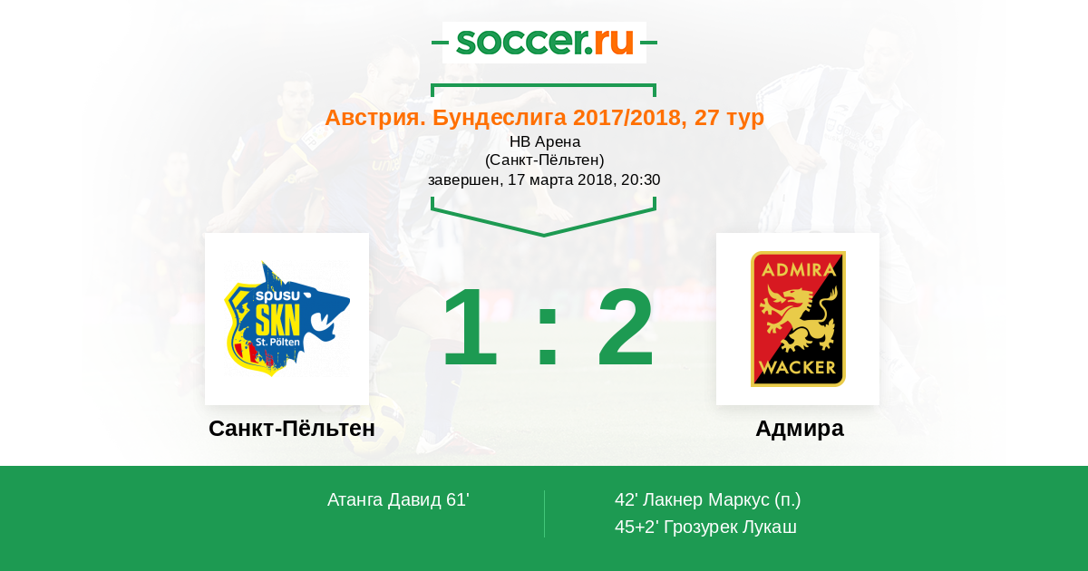 Протокол матча Санкт-Пёльтен против Адмира