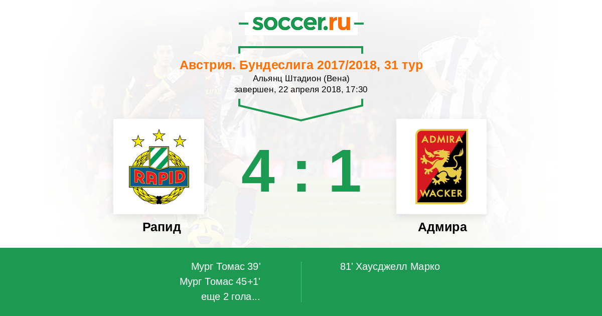 Протокол матча Рапид против Адмира