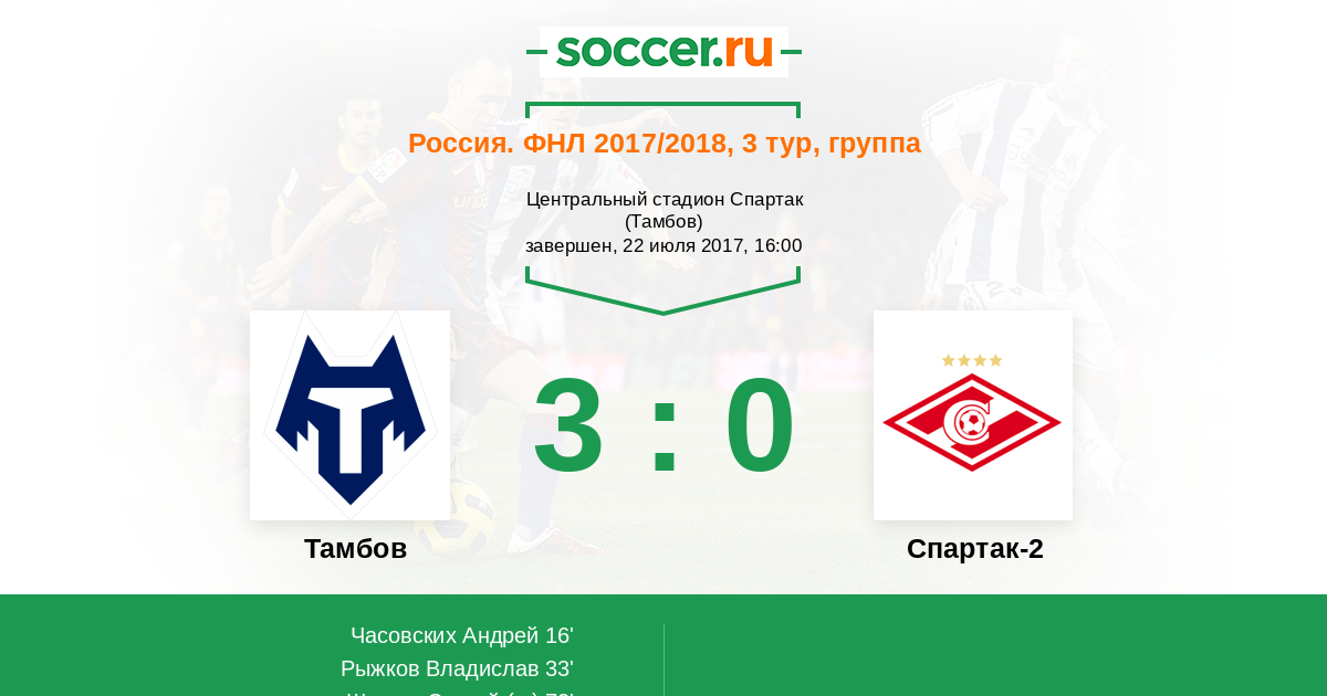 Протокол матча Тамбов против Спартак-2