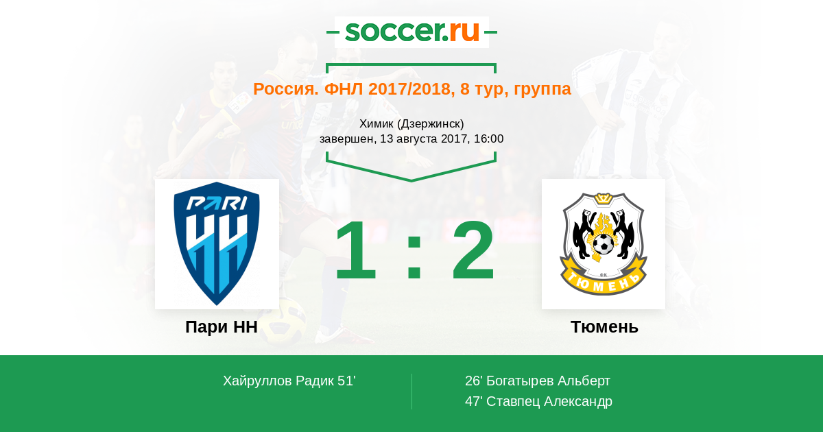 Протокол матча Пари НН против Тюмень