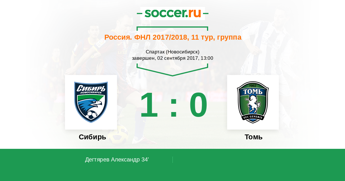 Протокол матча Сибирь против Томь