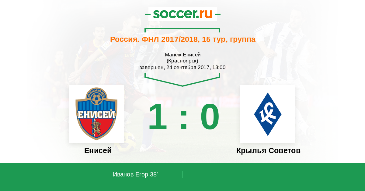 Протокол матча Енисей против Крылья Советов