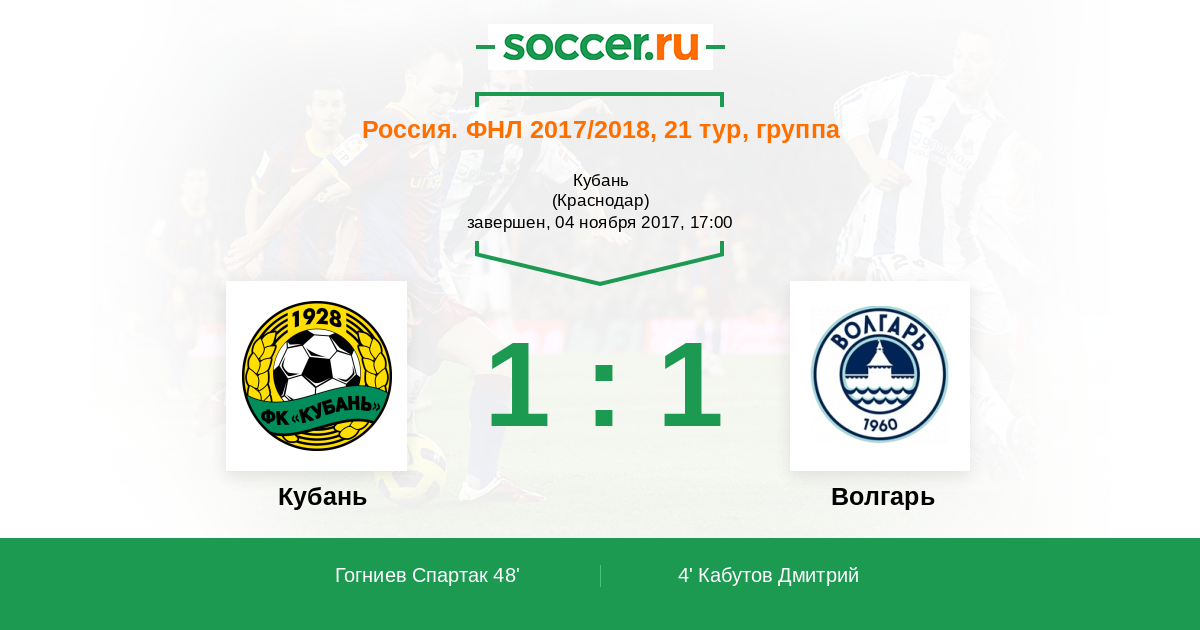 Протокол матча Кубань против Волгарь