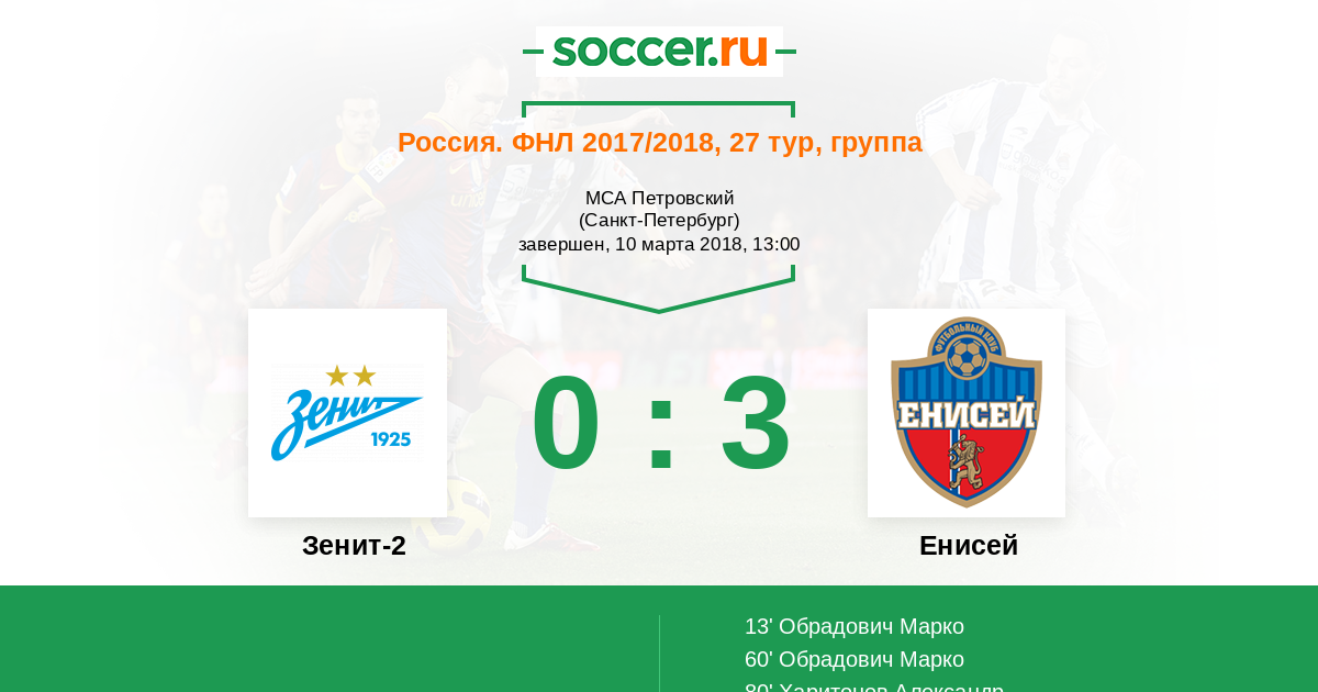 Протокол матча Зенит-2 против Енисей