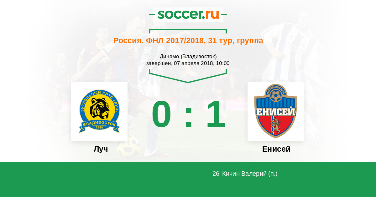 Протокол матча Луч против Енисей