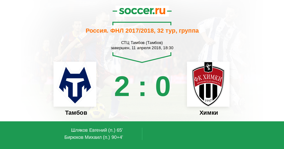 Протокол матча Тамбов против Химки