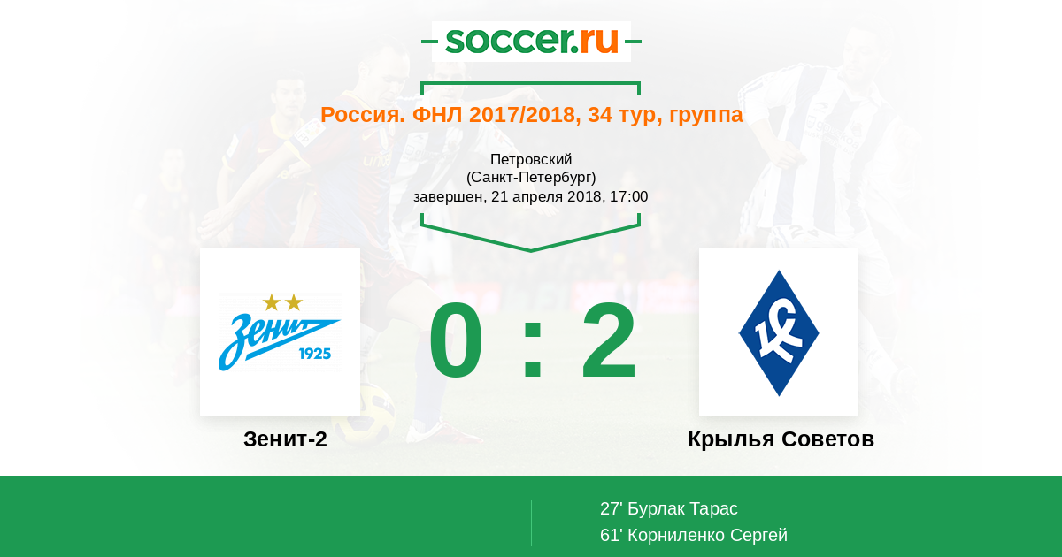 Протокол матча Зенит-2 против Крылья Советов