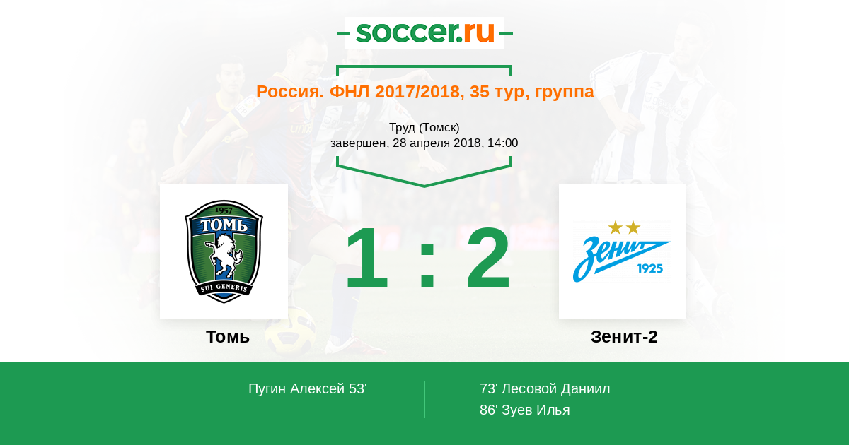 Протокол матча Томь против Зенит-2