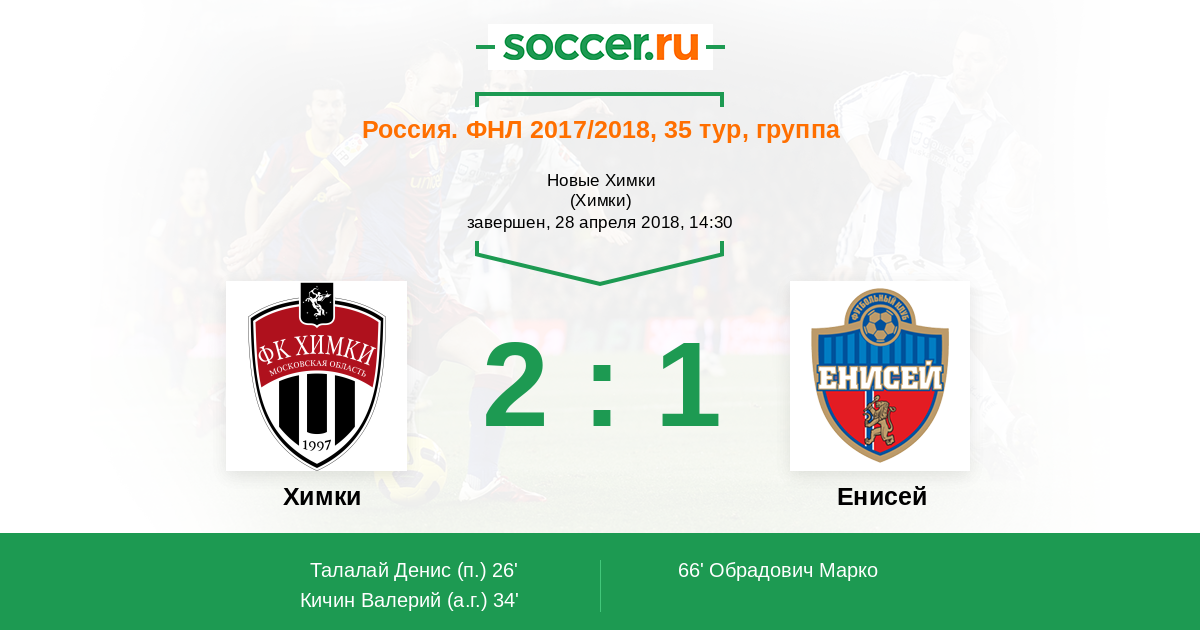 Протокол матча Химки против Енисей