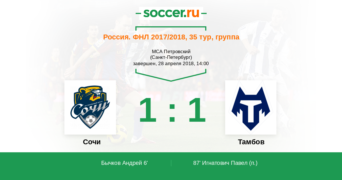 Протокол матча Динамо СПб против Тамбов