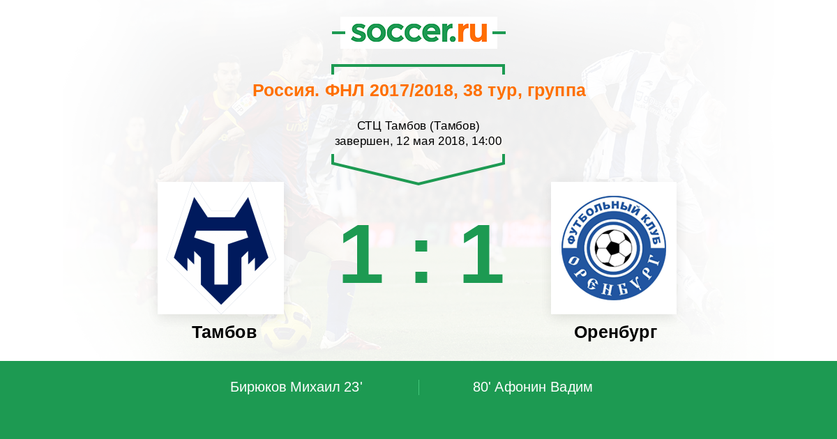 Протокол матча Тамбов против Оренбург