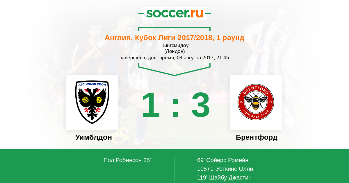 Протокол матча Уимблдон против Брентфорд