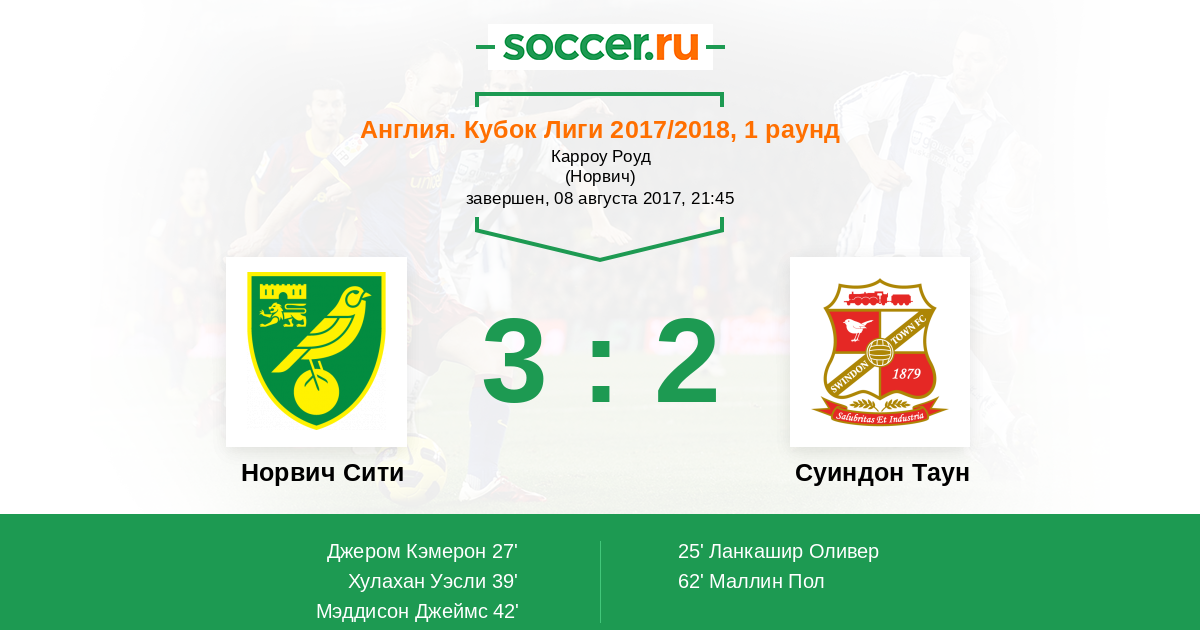 Протокол матча Норвич Сити против Суиндон Таун