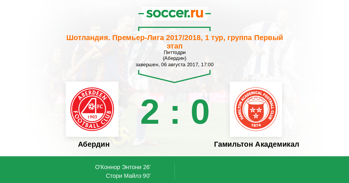 26' (1:0) О'Коннор Энтони (5) (Кристи Райан (22))