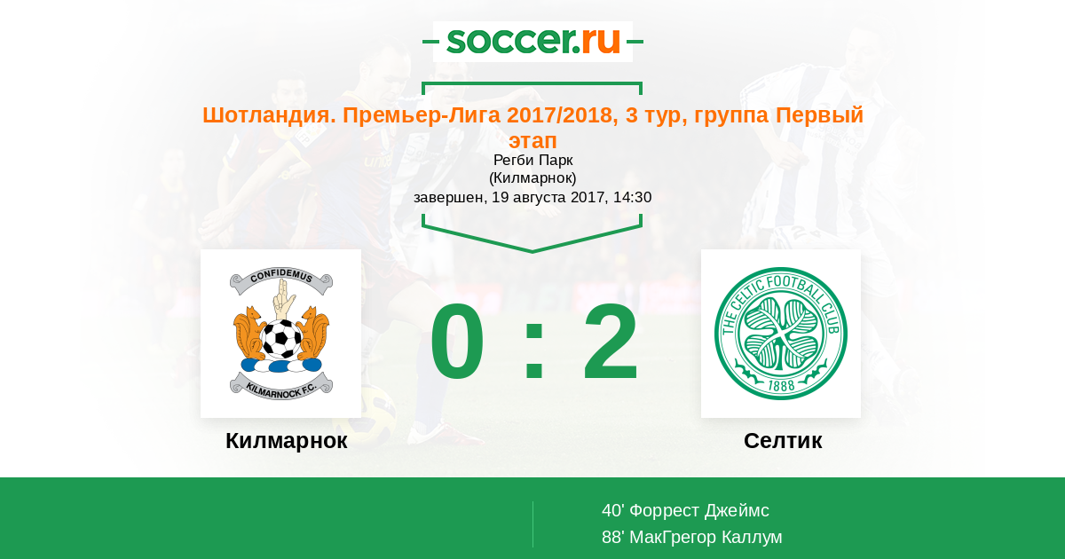 Протокол матча Килмарнок против Селтик