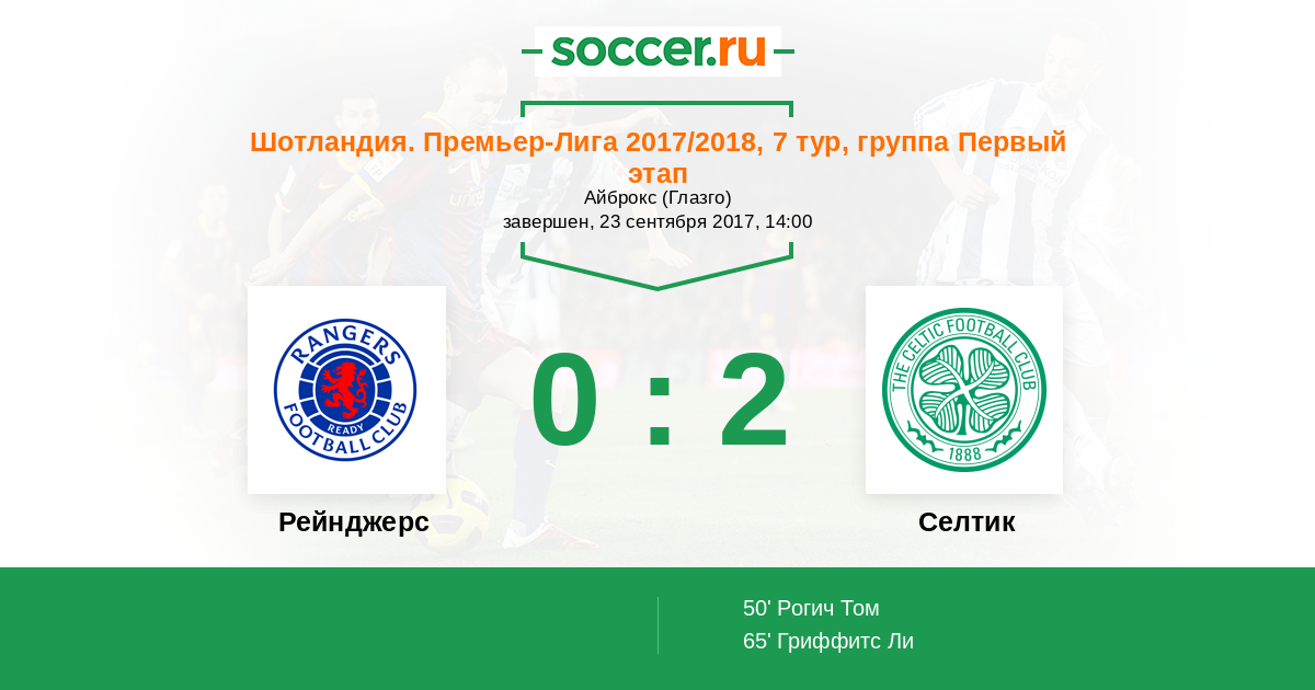Протокол матча Рейнджерс против Селтик