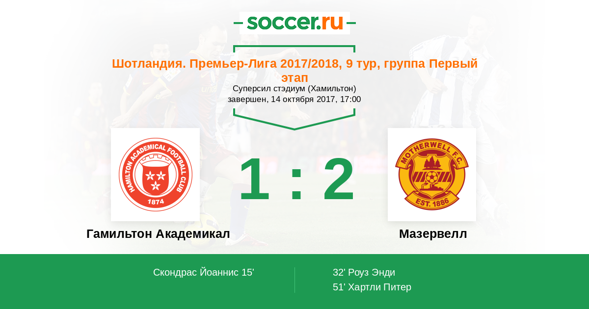 Протокол матча Гамильтон Академикал против Мазервелл