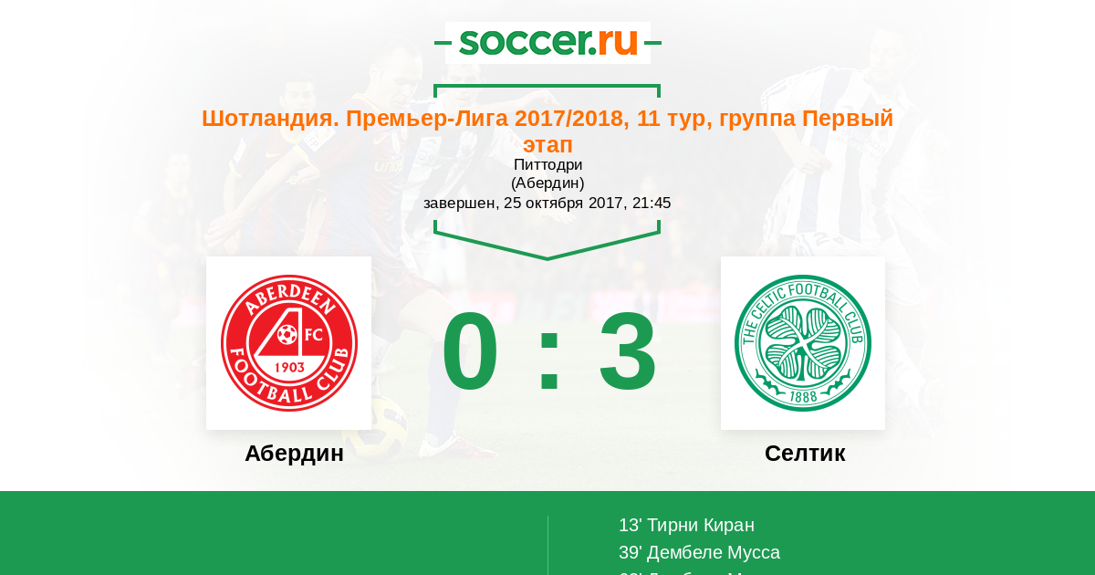 13' (0:1) Тирни Киран (63) (Дембеле Мусса (10))