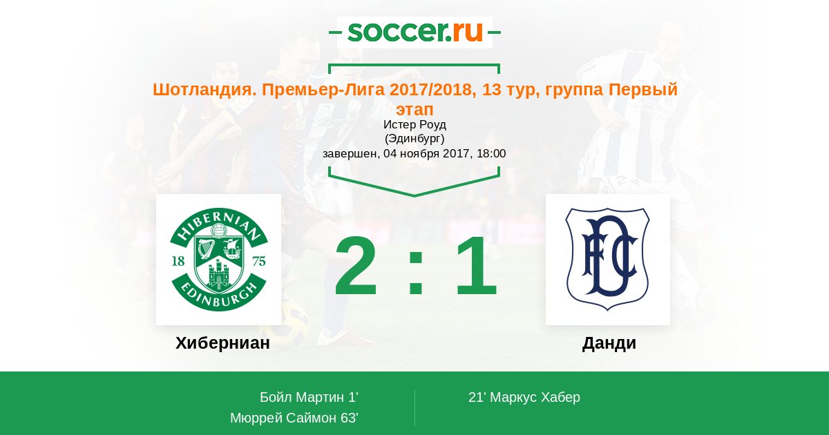 Протокол матча Хиберниан против Данди