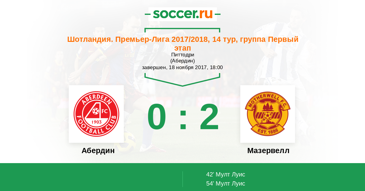 Протокол матча Абердин против Мазервелл