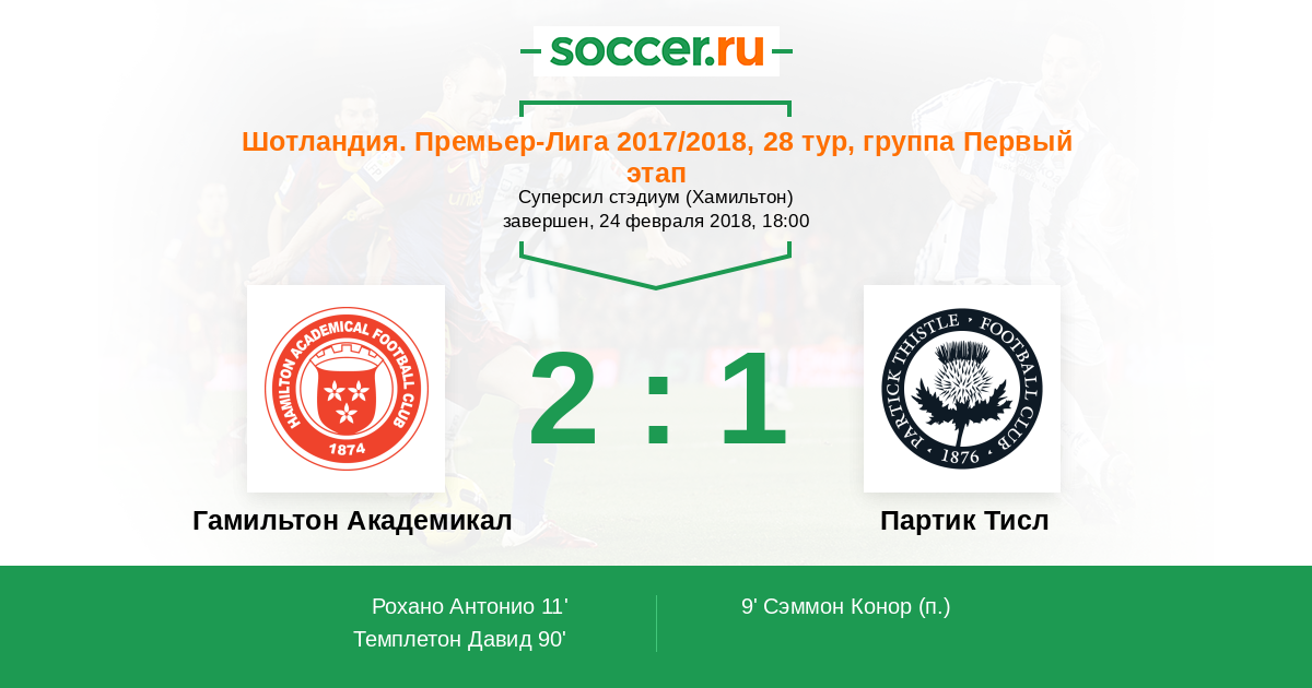 Протокол матча Гамильтон Академикал против Партик Тисл