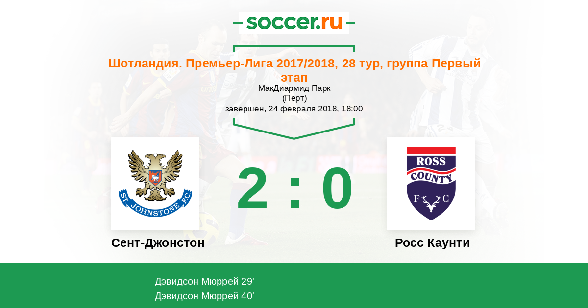29' (1:0) Дэвидсон Мюррей (8) (МакЛин Стивен (9))