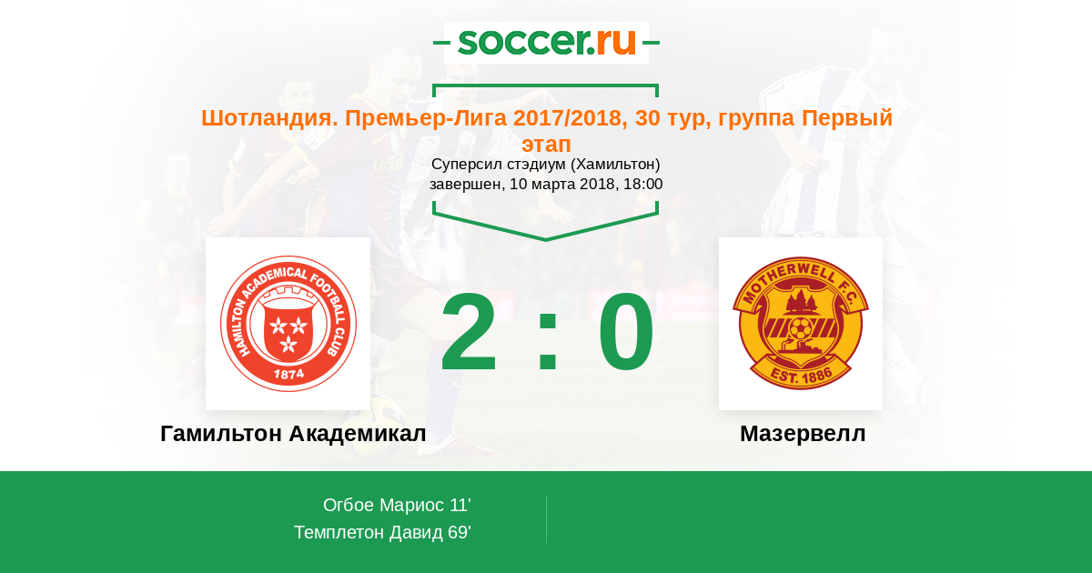 Протокол матча Гамильтон Академикал против Мазервелл