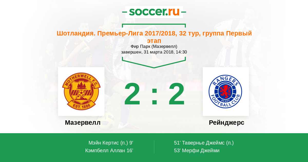 Протокол матча Мазервелл против Рейнджерс