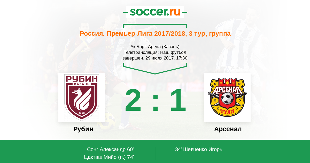Протокол матча Рубин против Арсенал