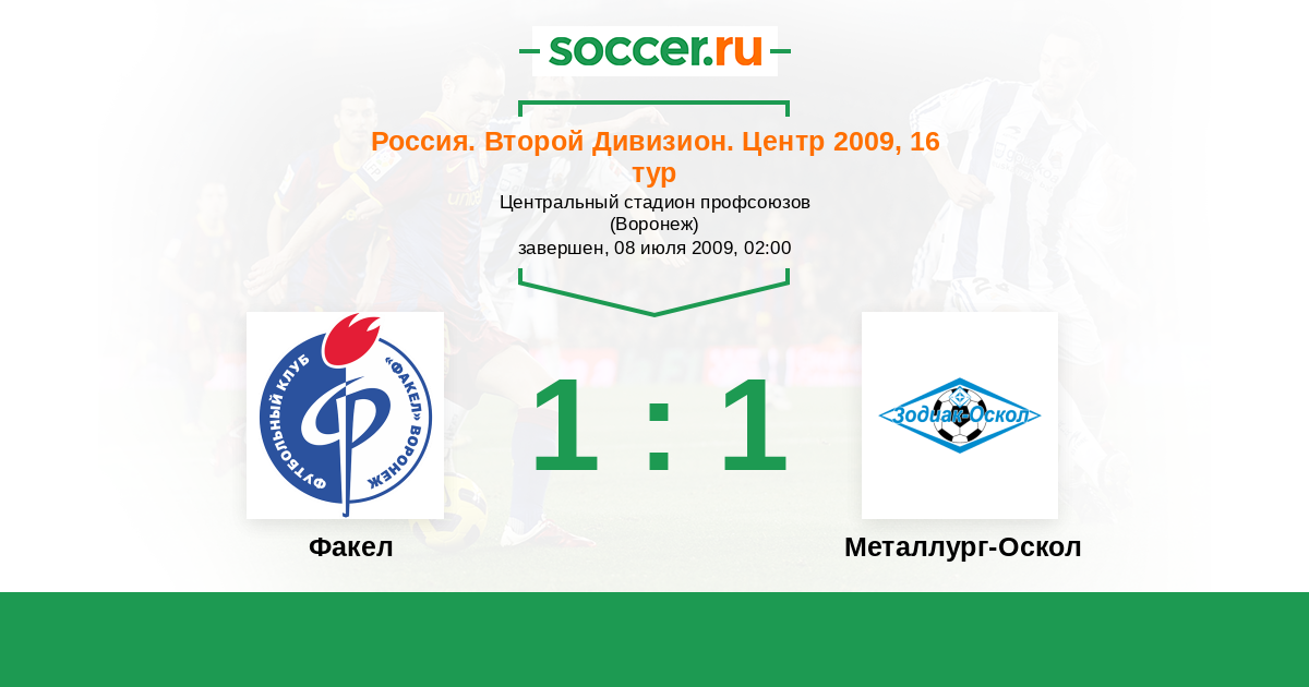 Россия. Вторая лига. Группа 3 22.07.2013 Факел Логотип футбольный клуб Факел (Воронеж) 0:0 Логотип футбольный клуб Металлург-Оскол (Старый Оскол) Металлург-Оскол