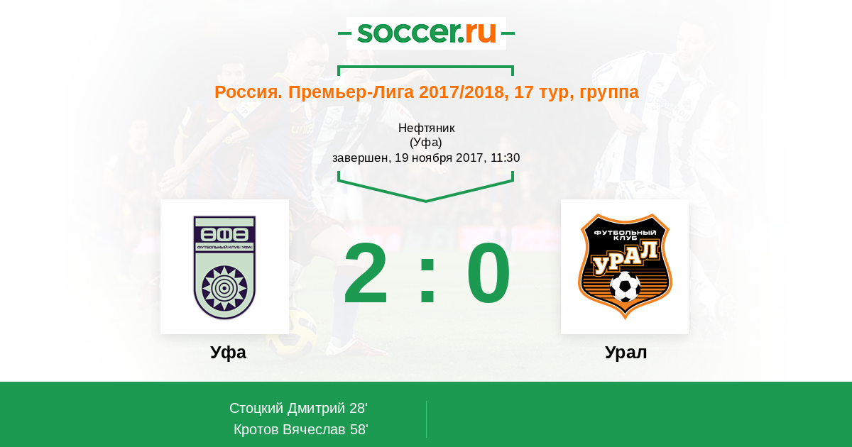 Протокол матча Уфа против Урал