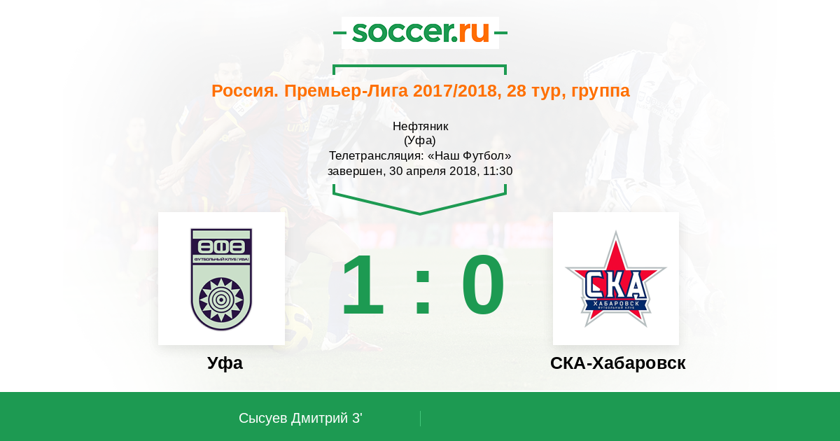 Протокол матча Уфа против СКА-Хабаровск