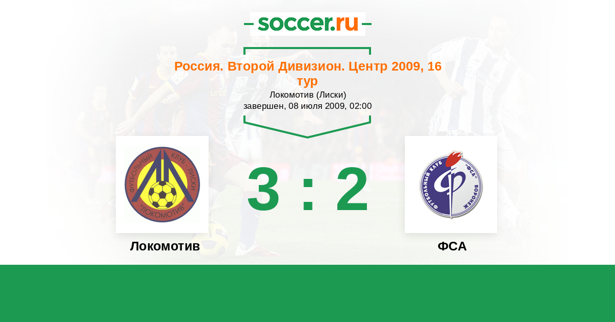 Россия. Вторая лига. Группа 3 08.10.2009 ФСА Логотип футбольный клуб ФСА (Воронеж) 0:2 Логотип футбольный клуб Локомотив (Лиски) Локомотив