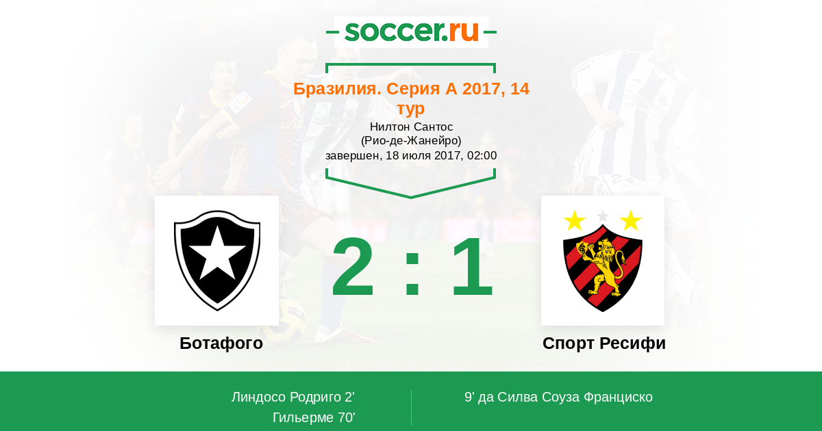 Протокол матча Ботафого против Спорт Ресифи
