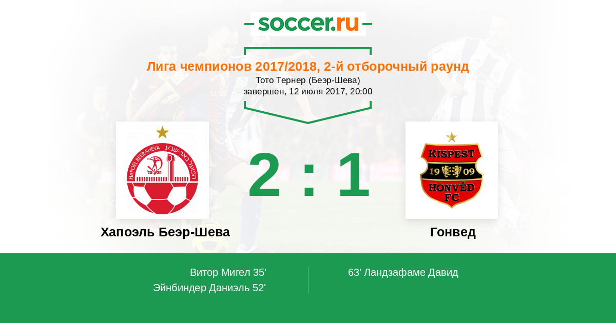 Протокол матча Хапоэль Беэр-Шева против Гонвед