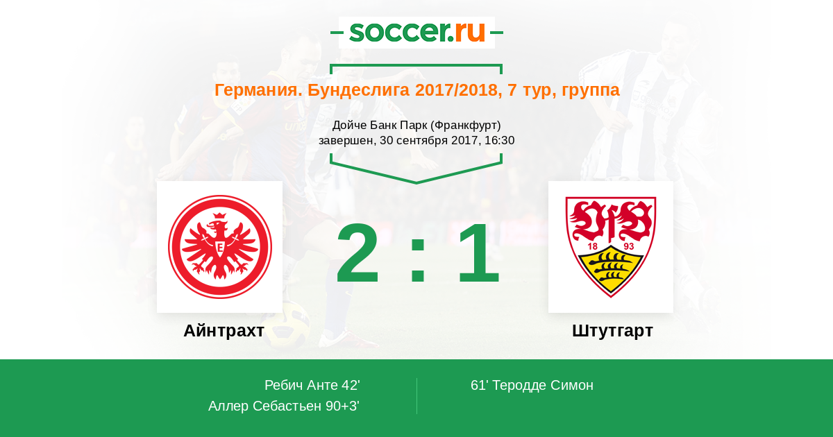 Протокол матча Айнтрахт против Штутгарт